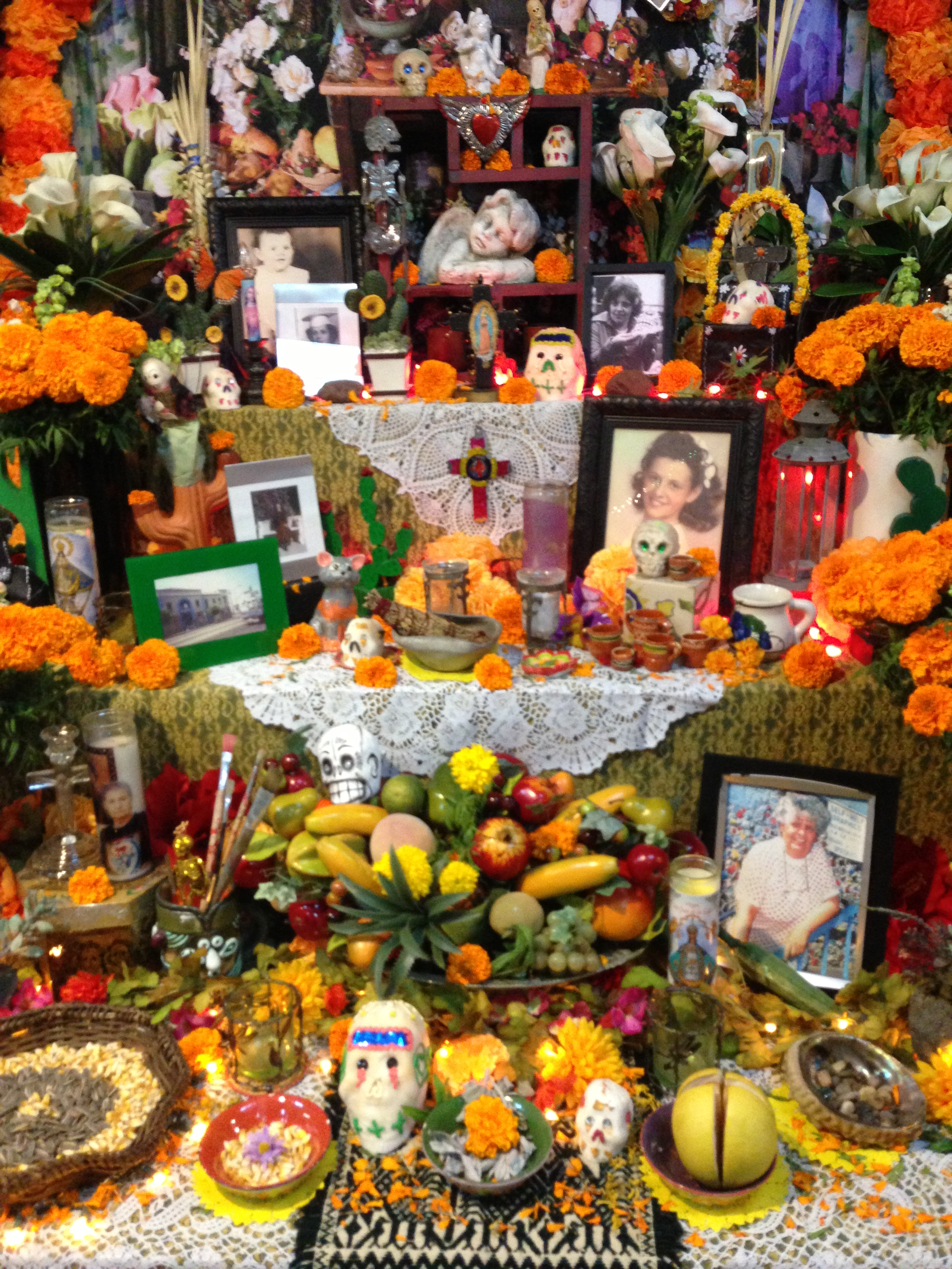 Mi vista se alegró al encontrar los altares tradicionales a los muertos llenos de colores, sabores y recuerdos…